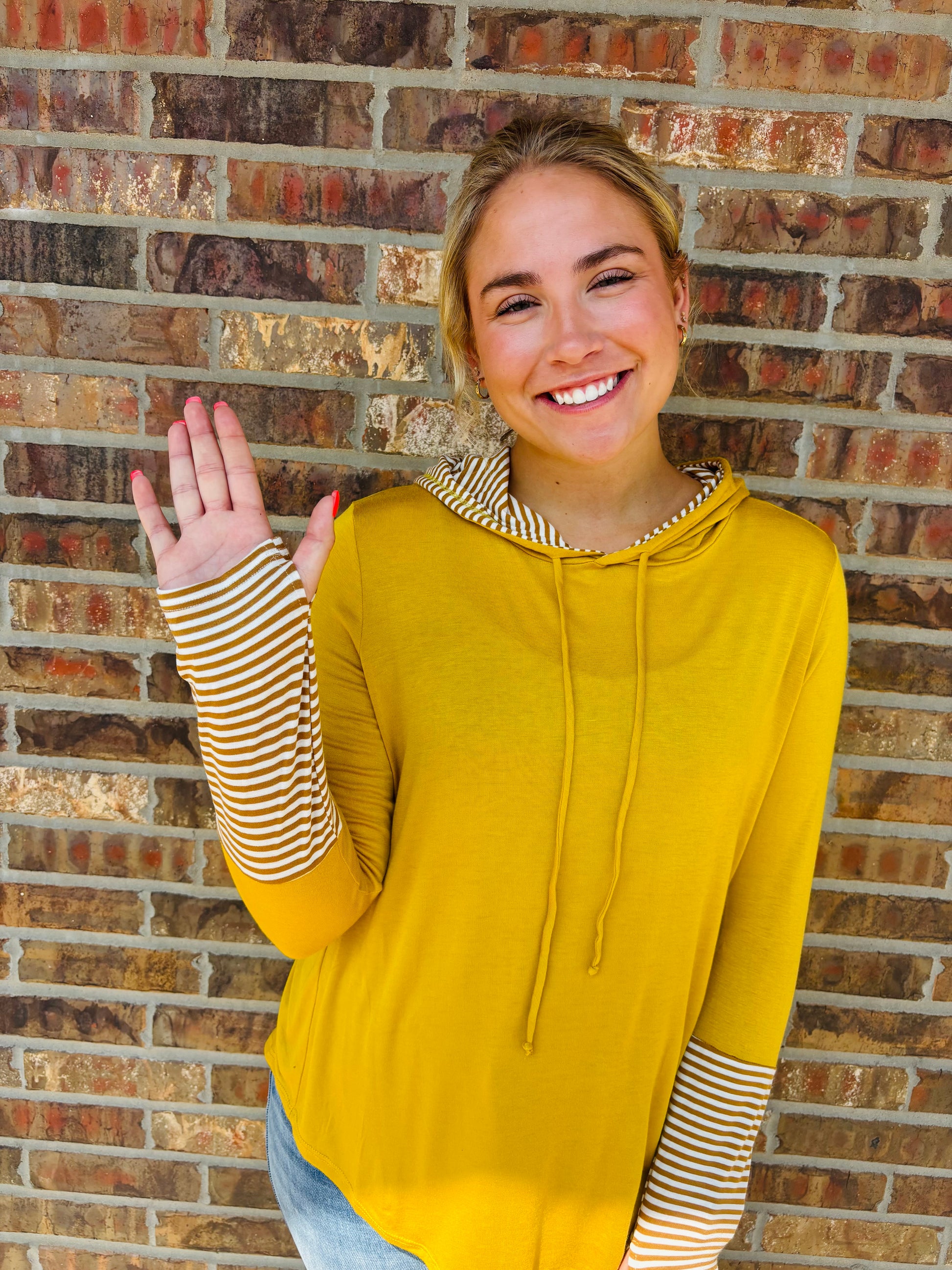Stay cozy and playful in the Avery Lightweight Hoodie, designed for everyday comfort with a fun twist. Its striped cuff sleeves add a touch of style, while the thumb holes keep your hands snug and sleeves perfectly in place. Adjustable drawstrings let you customize your fit, making this hoodie your go-to layering piece for any occasion.