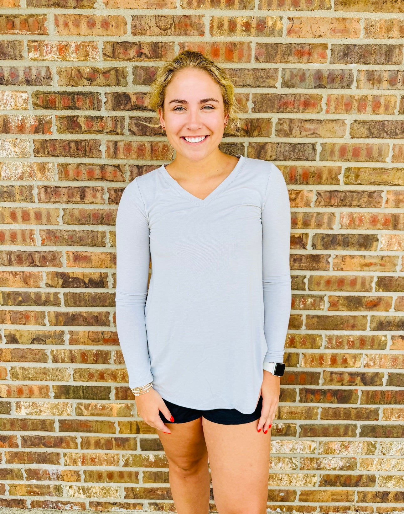 Cozy up in the Emelia V-Neck Top, crafted from super soft material that feels like a gentle hug all day long. Its flattering V-neck and long sleeves make it perfect for layering or wearing solo on those chillier days. Comfort meets style in this playful essential that you'll want to live in!