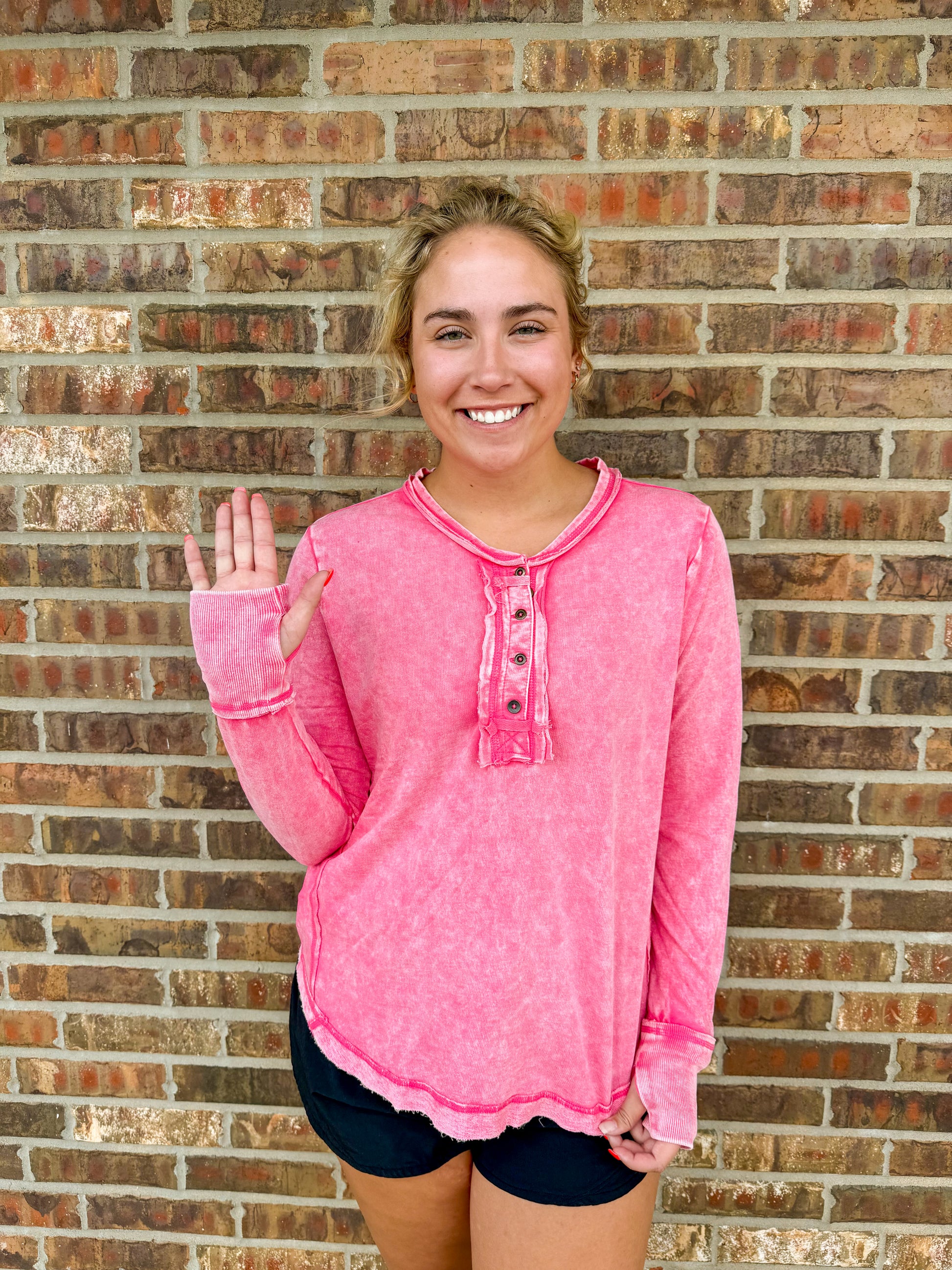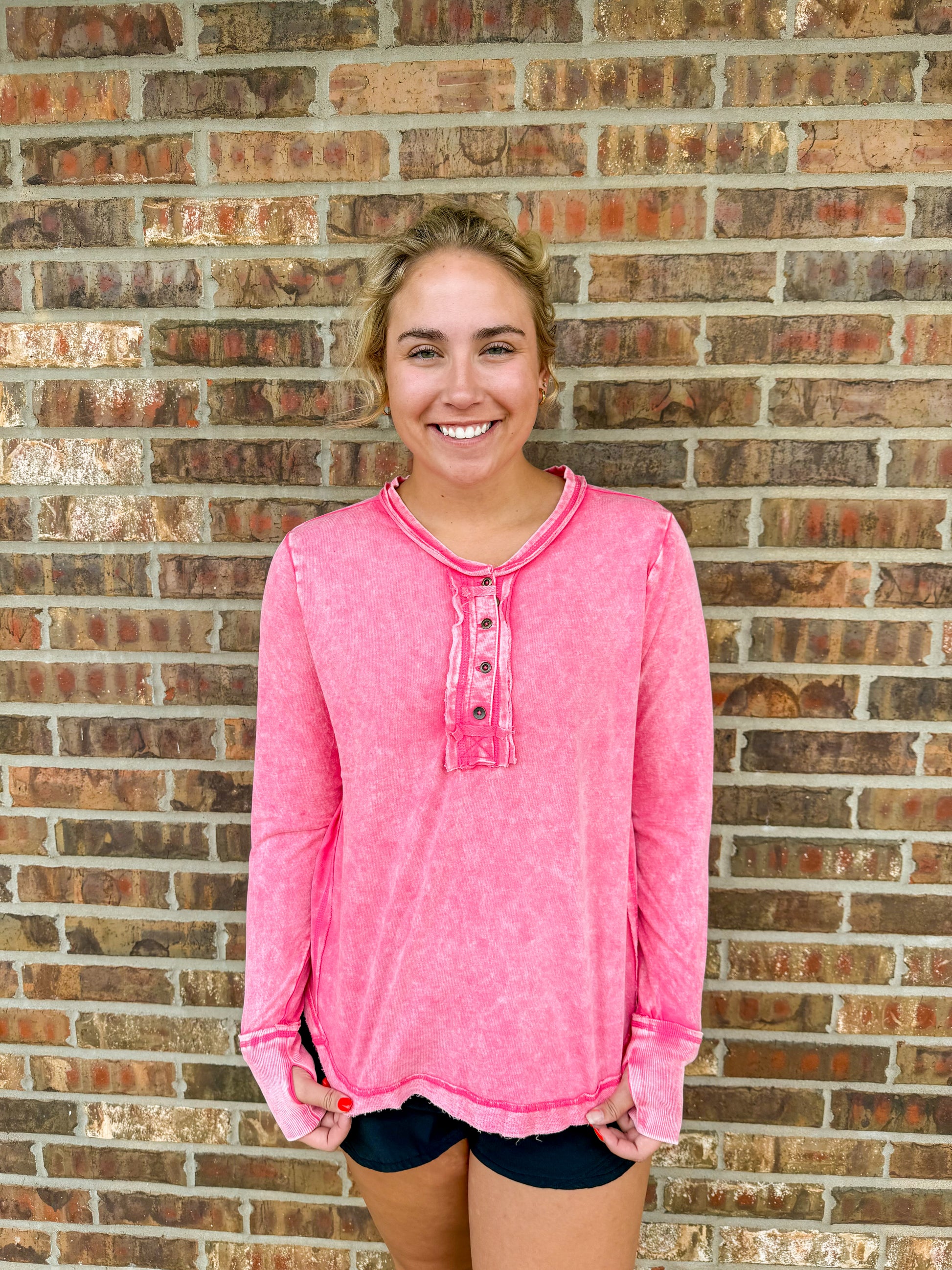 Elevate your wardrobe with the Emma Quarter Button long sleeve, available in pink, blue, and black. This versatile top blends classic style with comfortable wear, perfect for layering or wearing on its own. The quarter button design adds a subtle touch of sophistication, making it ideal for both casual outings and polished looks. Choose your favorite color to refresh your everyday essentials effortlessly.