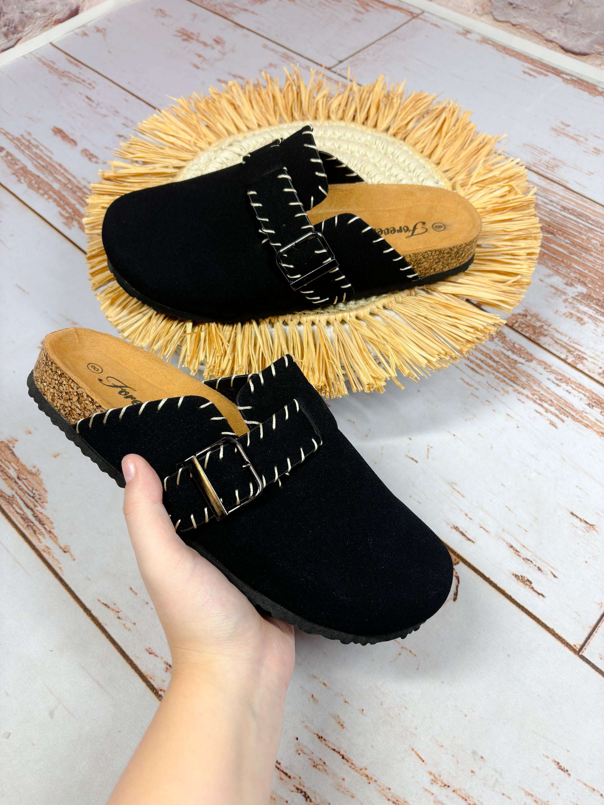 These shoes are the perfect on the go, ready to slip on shoe. You can dress them up or down, they have the perfect stitching detail around the buckle.