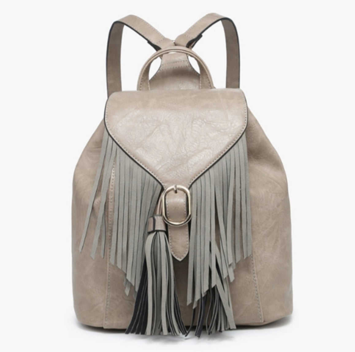 The Jewel Bucket Backpack offers a blend of style and functionality, with its unique fringe design, adjustable straps, and various interior pockets.
