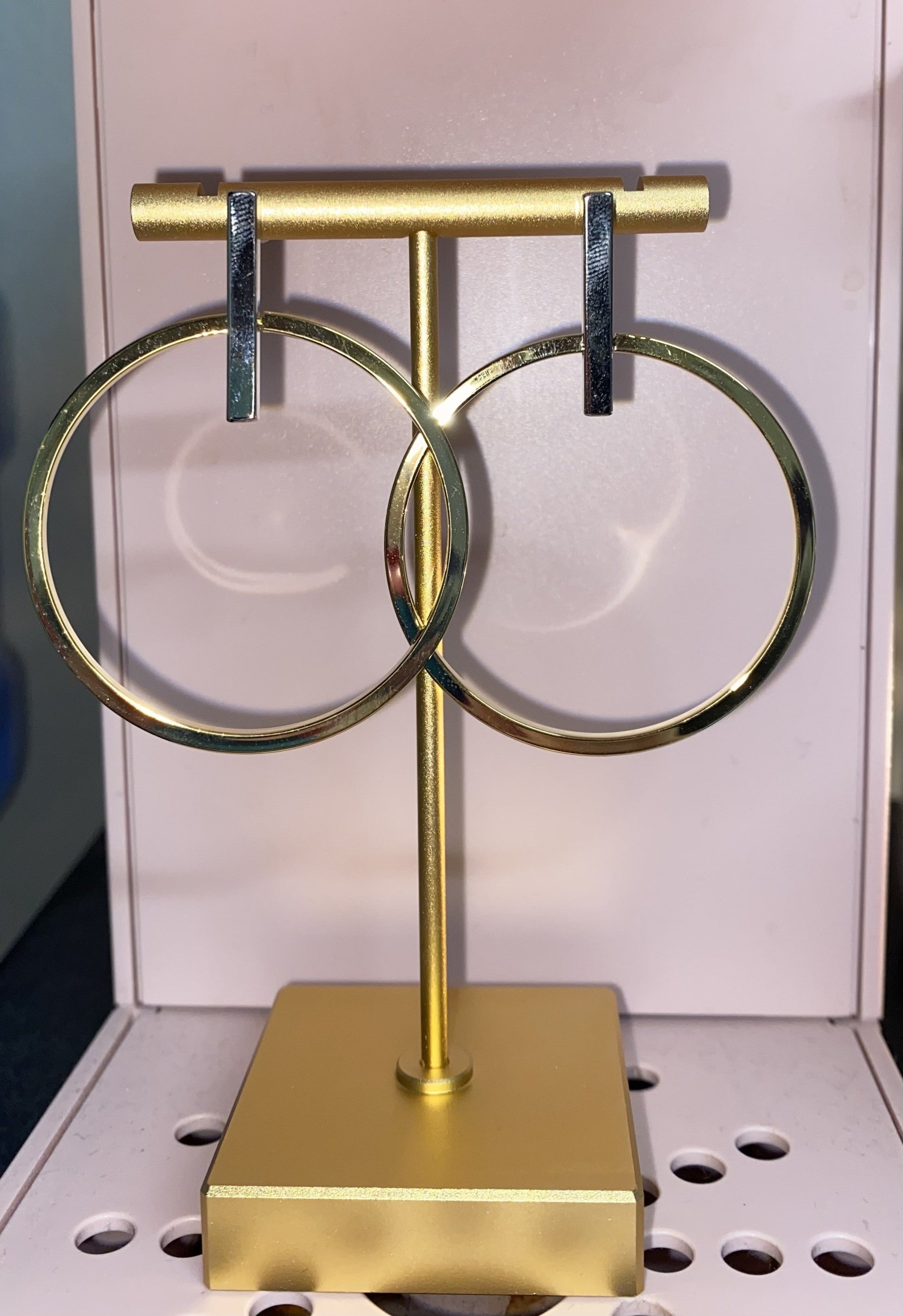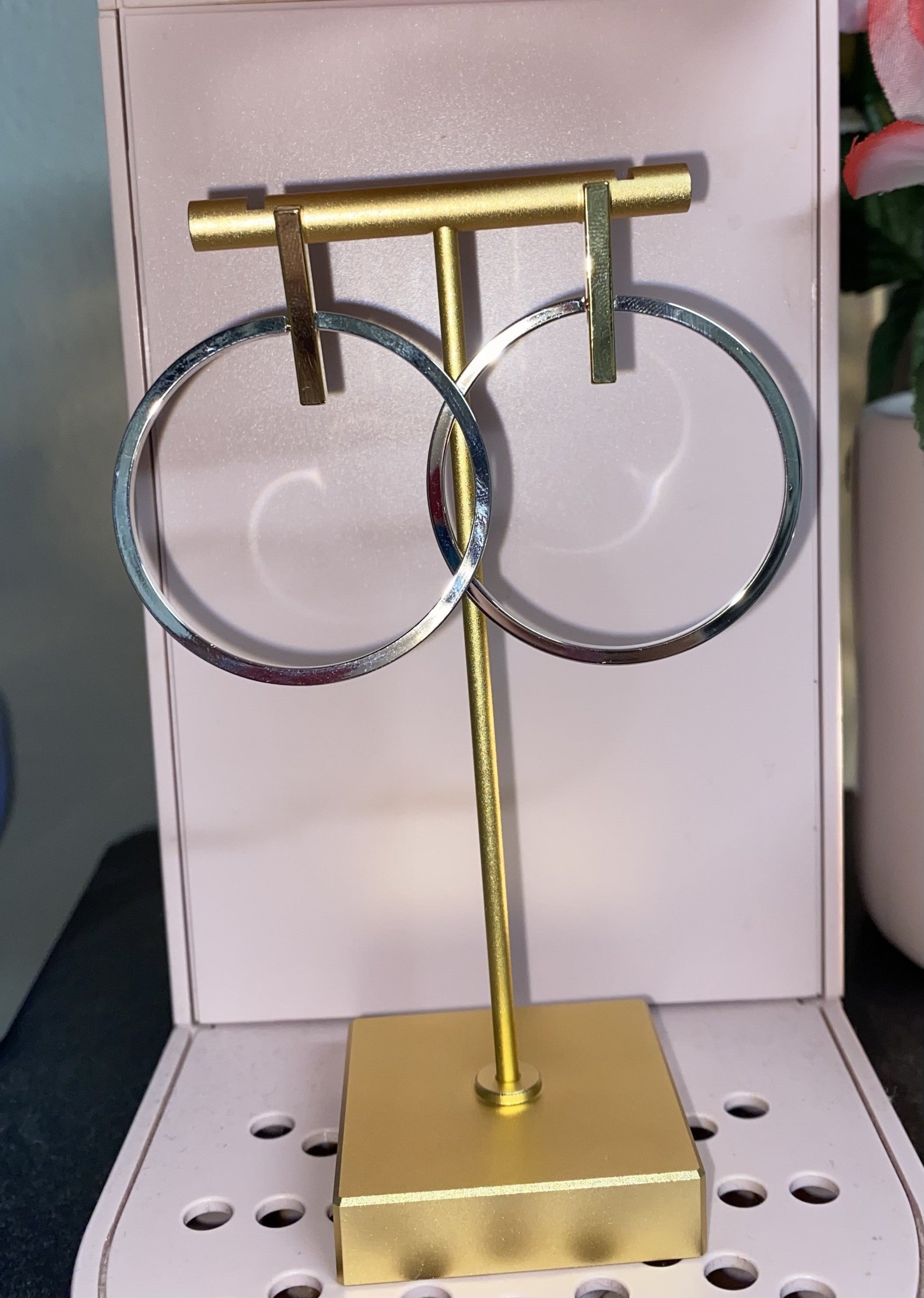 Silver and Gold hooped earrings with bar. So cute and glamourous