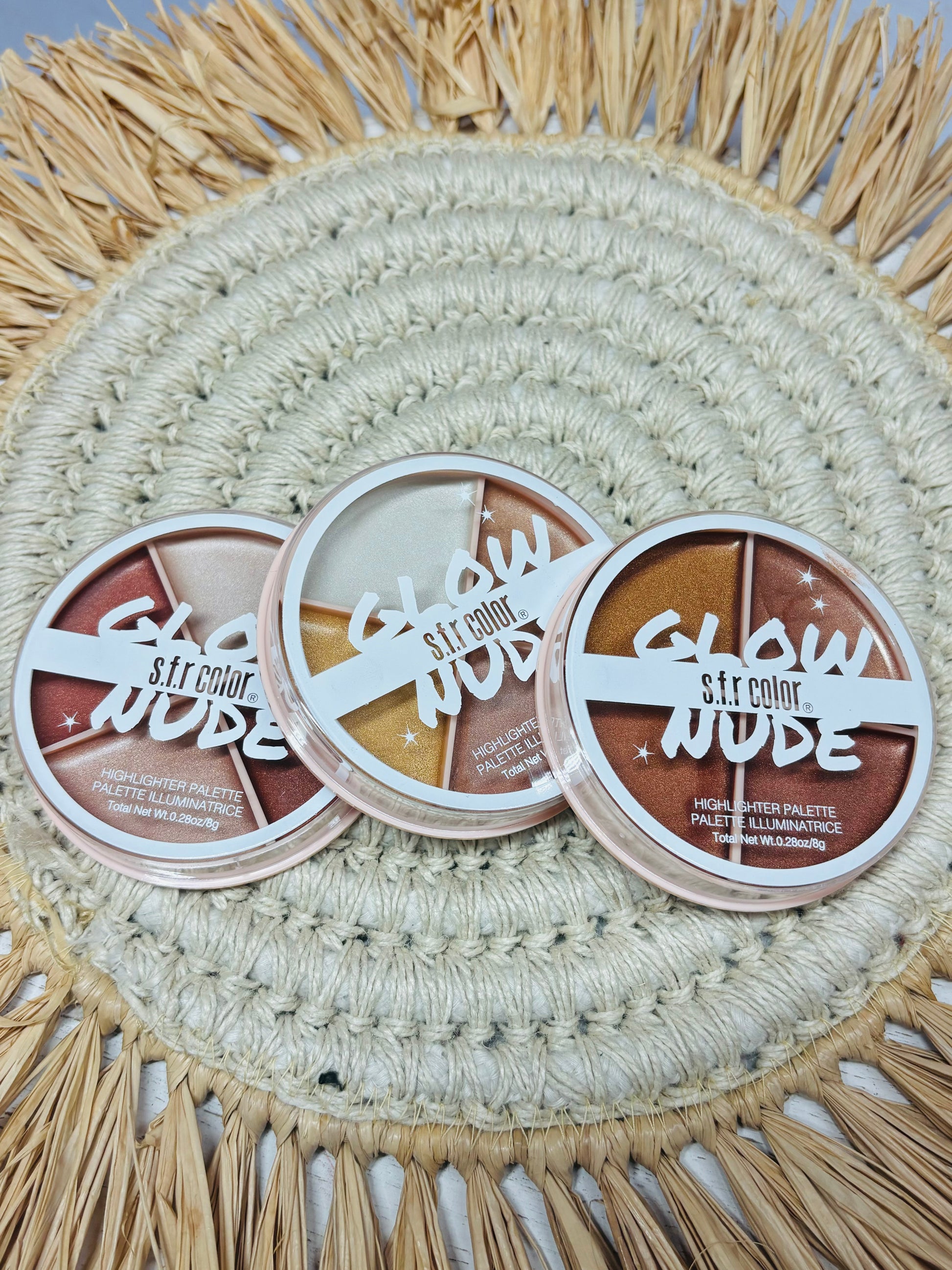 Get your glow on with our Nude Highlighter Palette! This playful palette features 4 shades of natural, nude colored highlighters to give you a subtle yet stunning shimmer. Perfect for adding a touch of radiance to your daily makeup routine. (No more dull skin!)