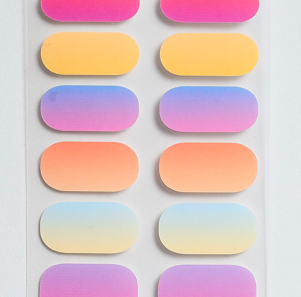 Real Gel Nail Polish Stickers! Our real gel nail polish stickers come in a 16 nail set. Apply the real gel nail polish stickers. Set with our curing lamp for gel nails, then cut and file the excess. Each set lasts about 10-14 days.