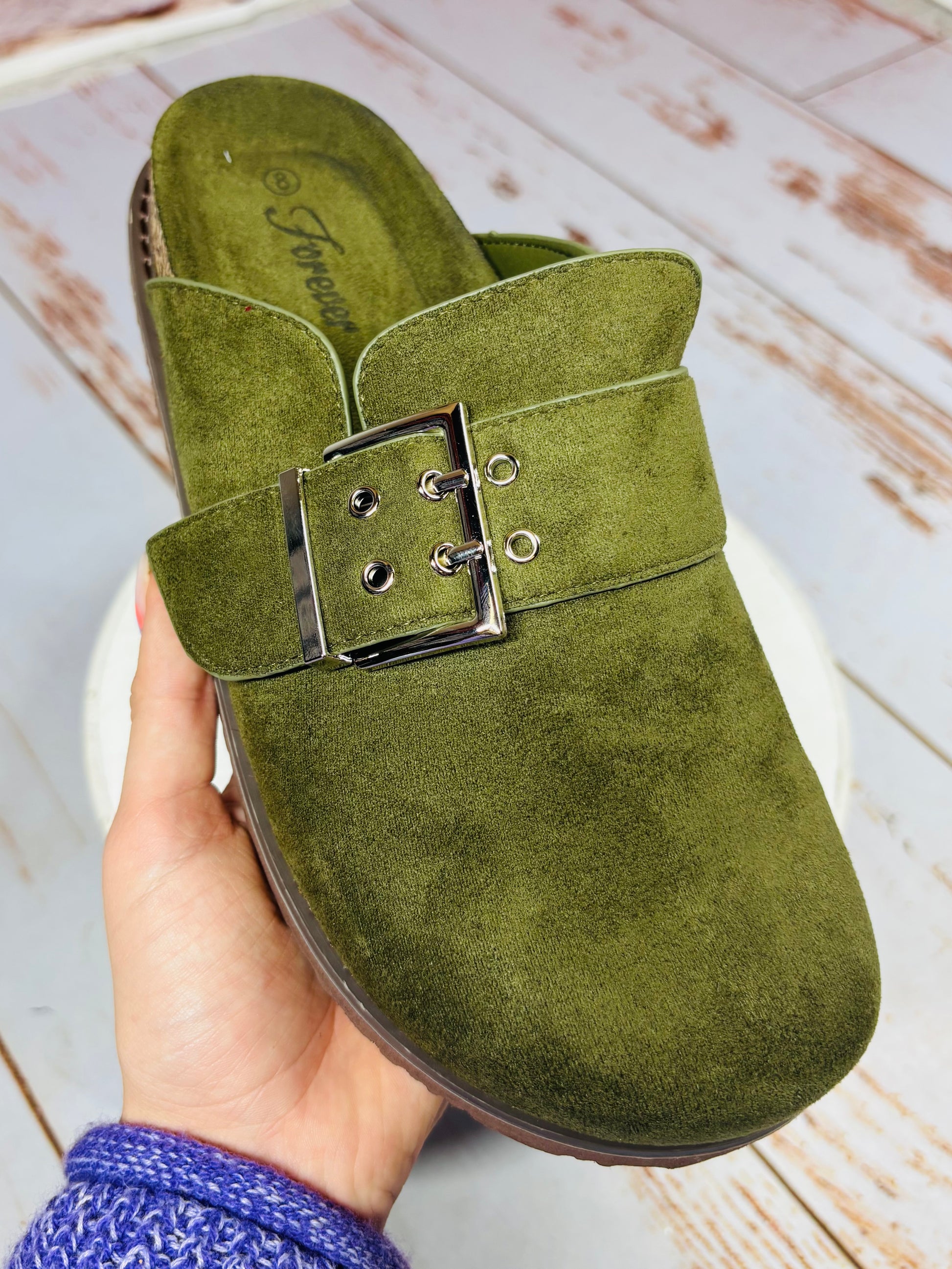 Experience ultimate comfort and style with the Quinn Buckle Strap Clog by Forever. Crafted with a true to size fit and made with high-quality suede, this clog is both trendy and functional. The added buckle strap provides a secure fit, making it the perfect addition to your wardrobe.