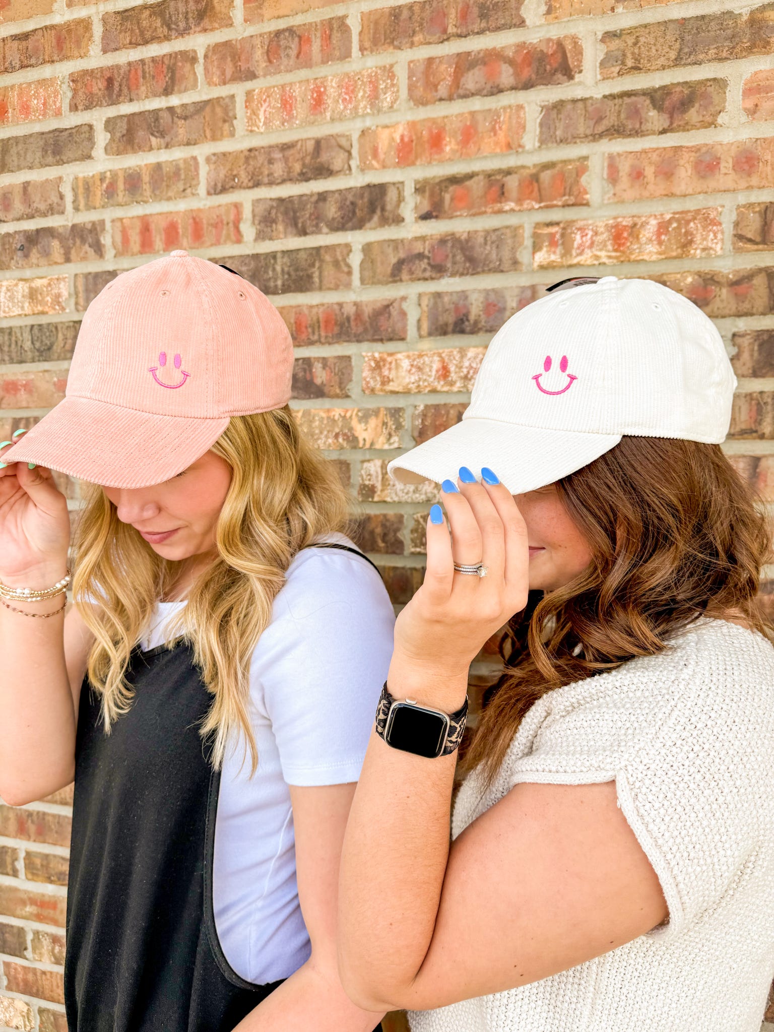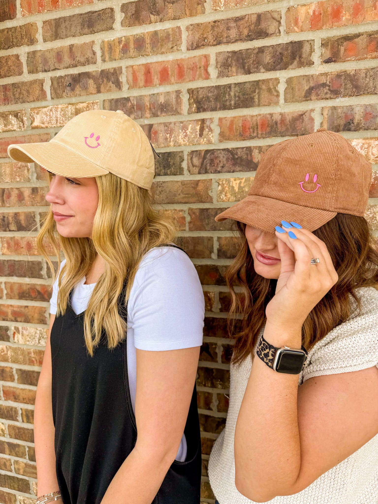 Stay warm and stylish with our Smiley Corduroy Hat. Made with soft, adjustable corduroy material, this hat features a small smiley face for a touch of fun. Perfect for any casual outing, add a smile to your wardrobe today.