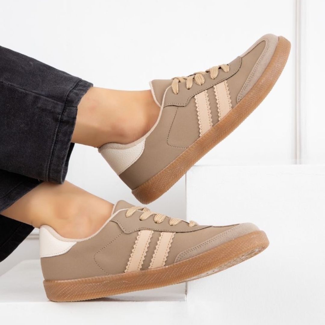 Step into style and comfort with our TANIA model sneakers, featuring a chic blend. These lace-up shoes are designed to fit true to size, making them the perfect addition to your wardrobe. Whether you're dressing up or down, these versatile sneakers can effortlessly complement any outfit in your closet.