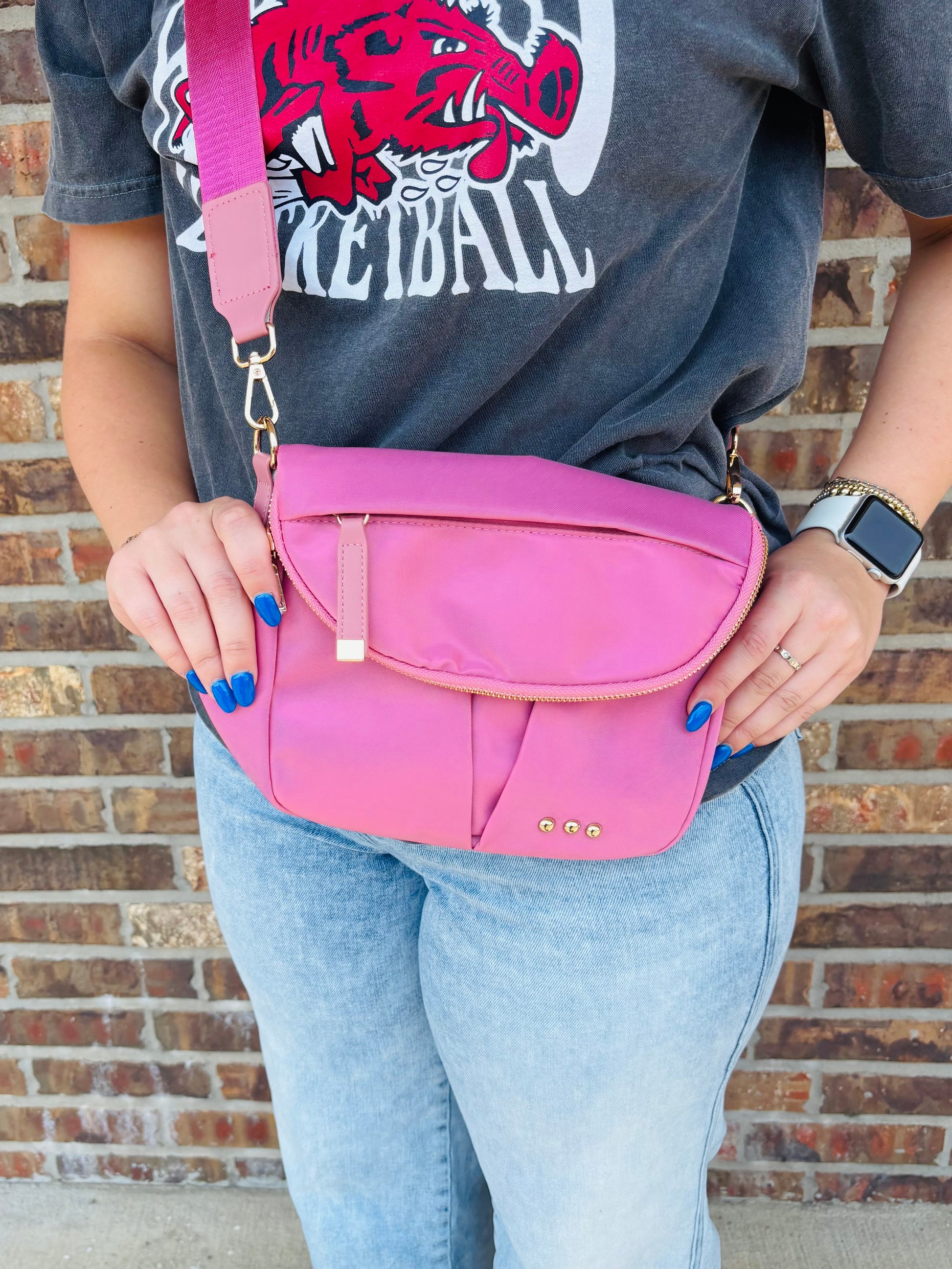 The Tilly Crossbody Bag is your new go-to for fun and function! Made from durable nylon, it features a detachable and adjustable strap so you can wear it your way. With a magnetic button closure and zipper, your essentials stay secure while you enjoy the roomy, spacious interior perfect for all your daily adventures. Stylish, practical, and ready to keep up with your playful spirit!
